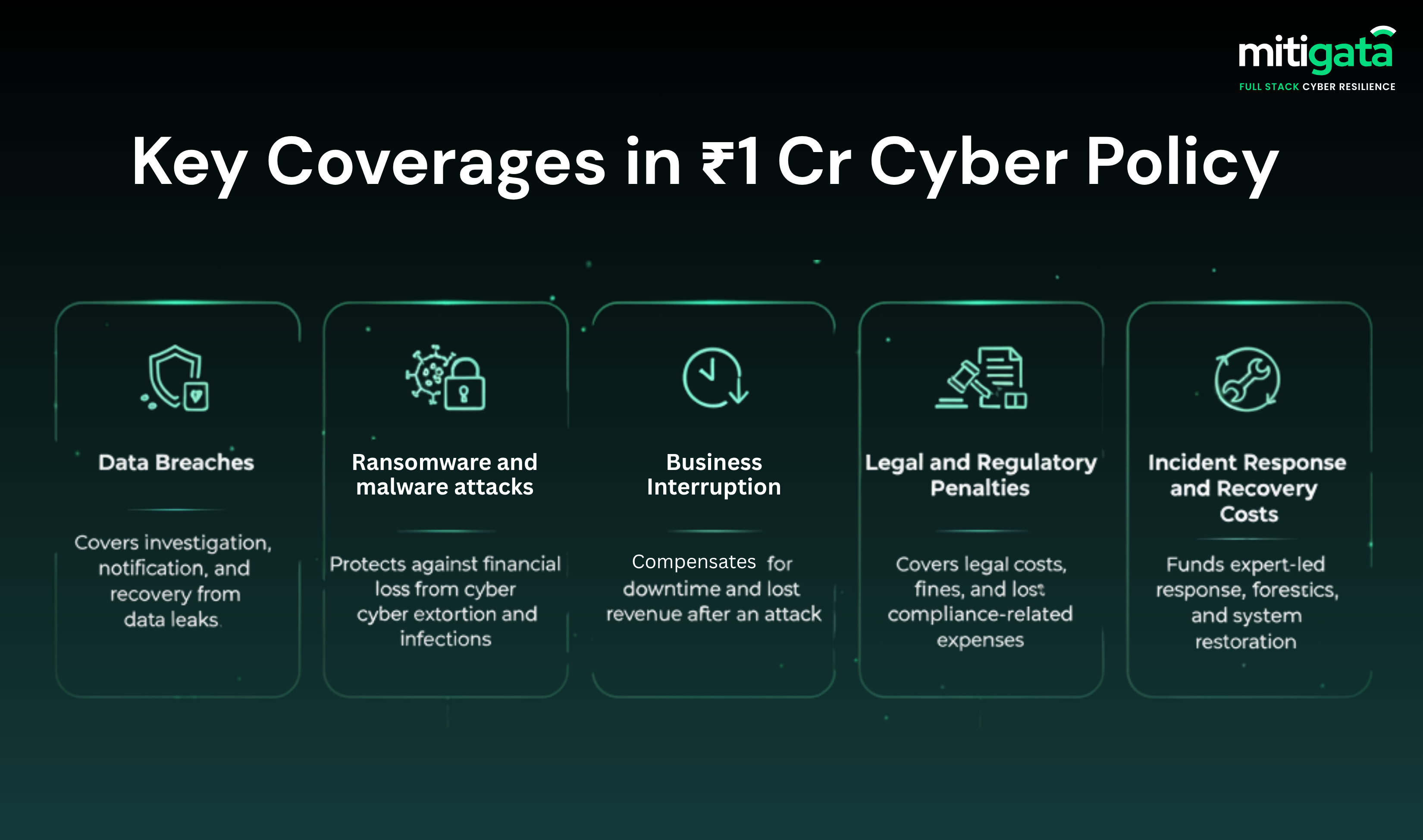Partnered with leading insurers, Mitigata offers you a comprehensive cyber insurance coverage of ₹1 crore starting at just ₹95,000/year*.