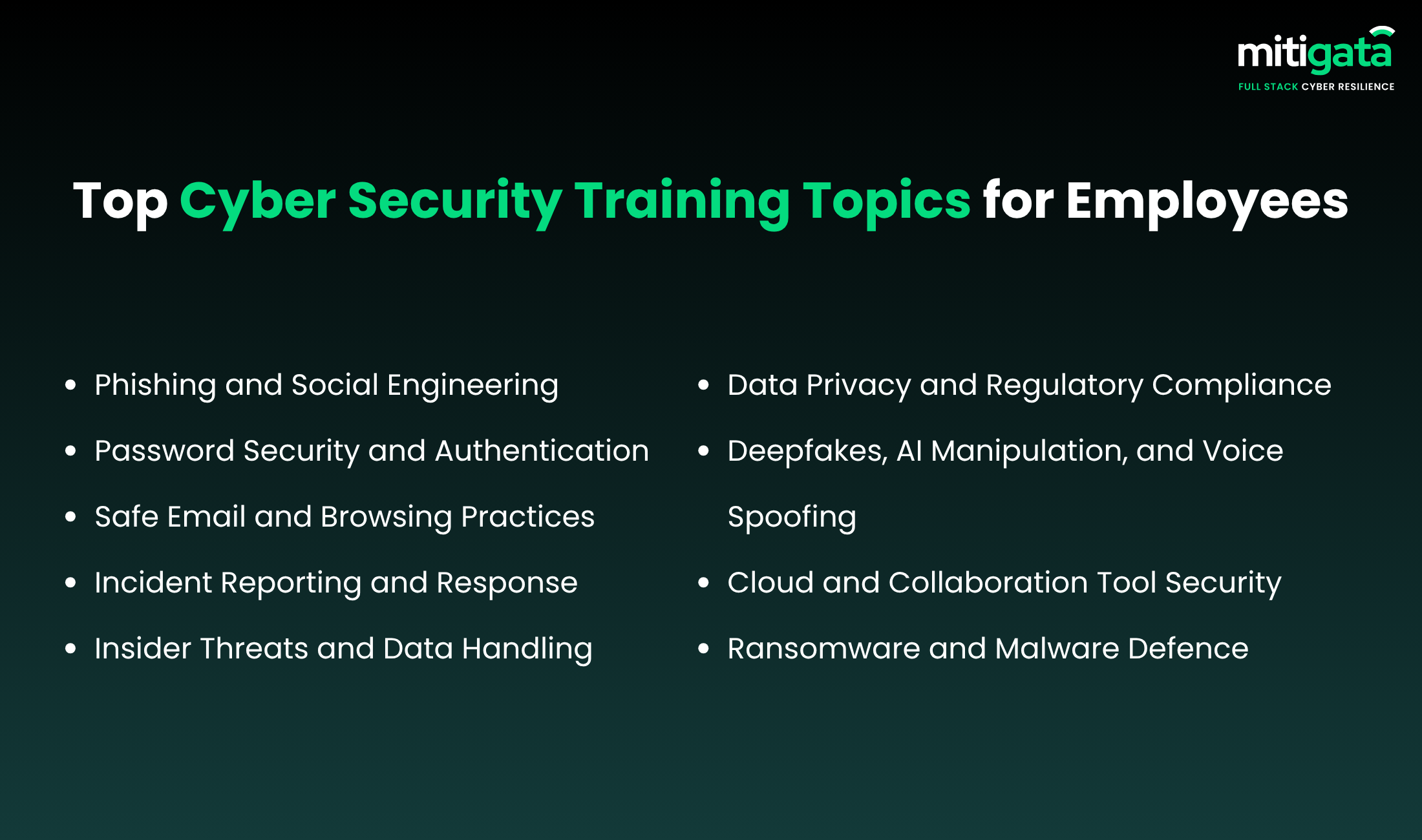 A strong cybersecurity awareness program should focus on the threats employees face every day. Covering the right core topics ensures your workforce can identify risks early and take the right actions to prevent breaches.